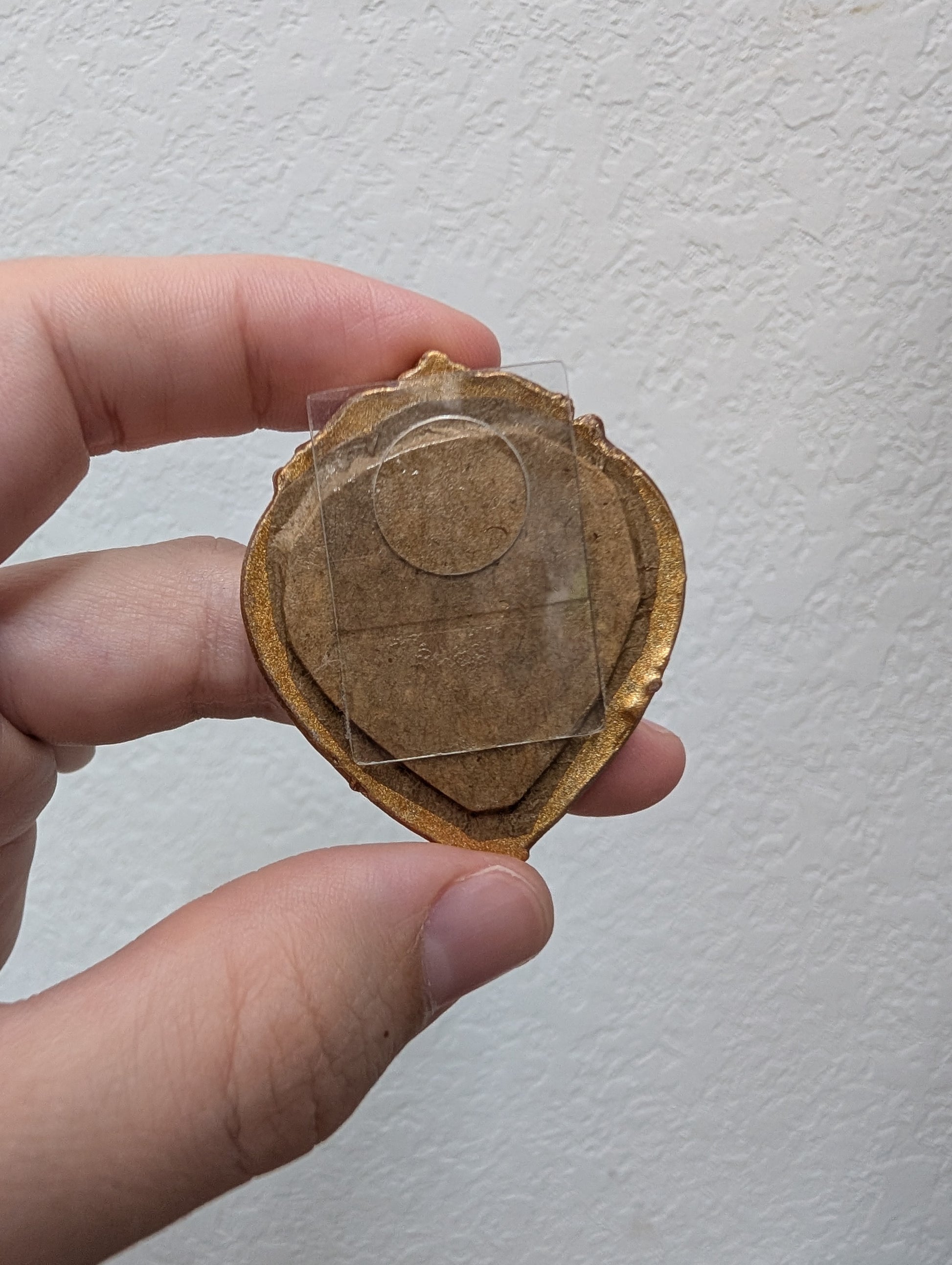 These make great gifts for any miniature enthusiast! It comes in the little gold frame, and has a tag hanger on the back.