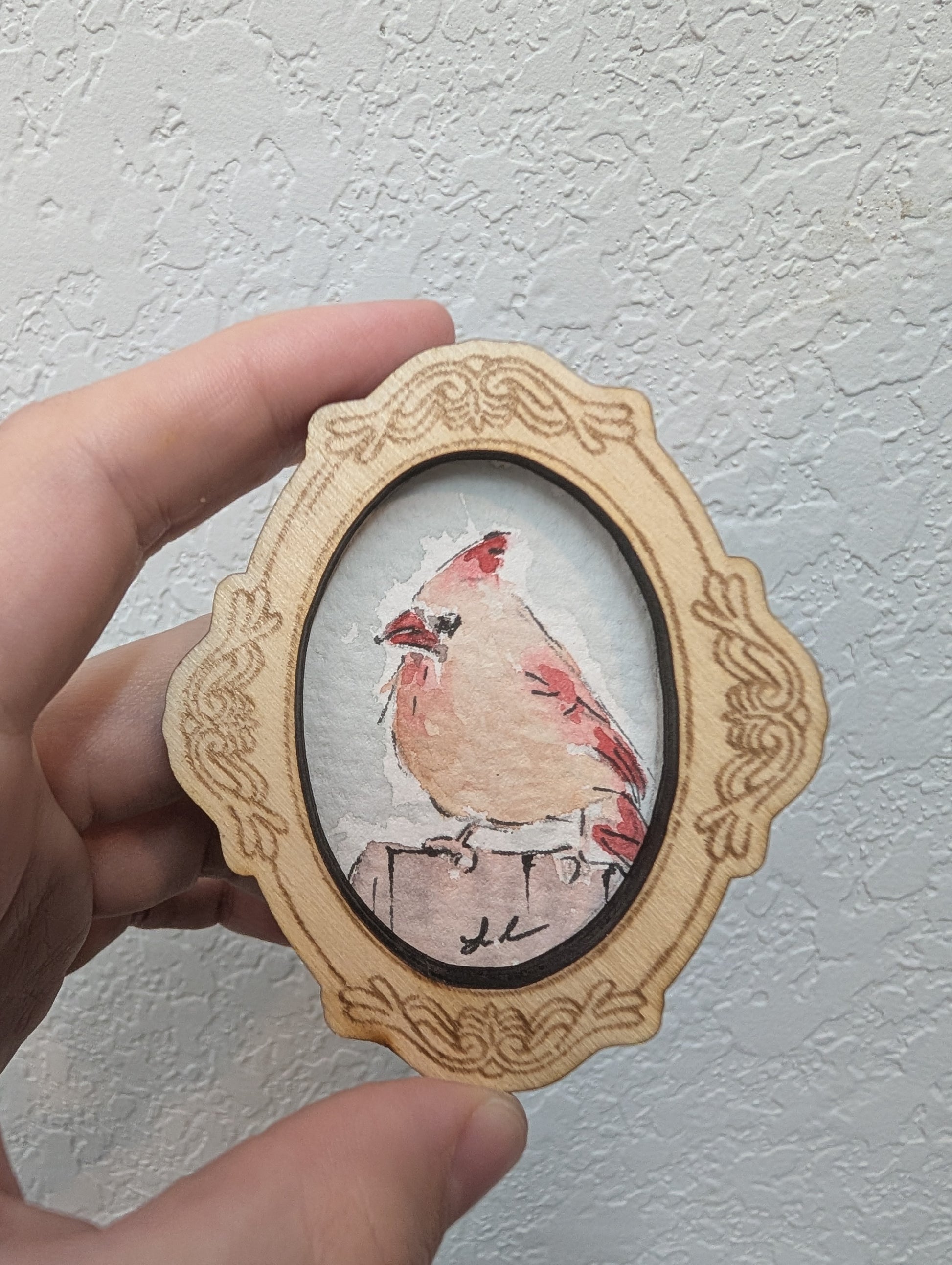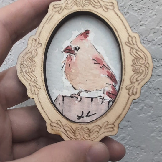 Mini Female Cardinal Bird Painting - Original Watercolor Art by Lora Cavallin