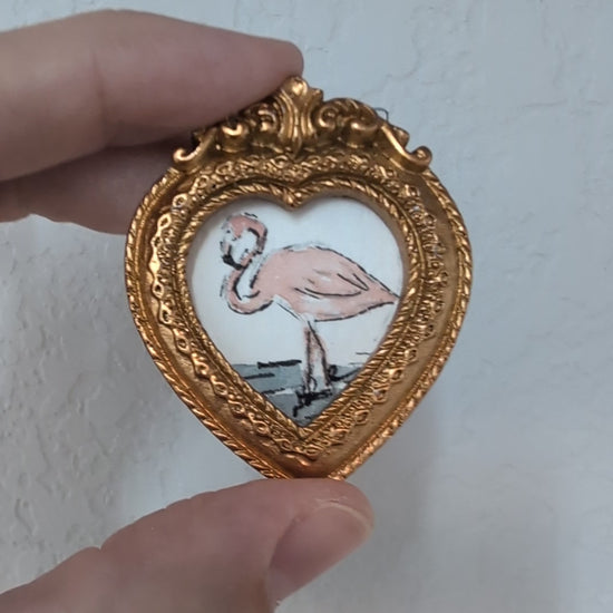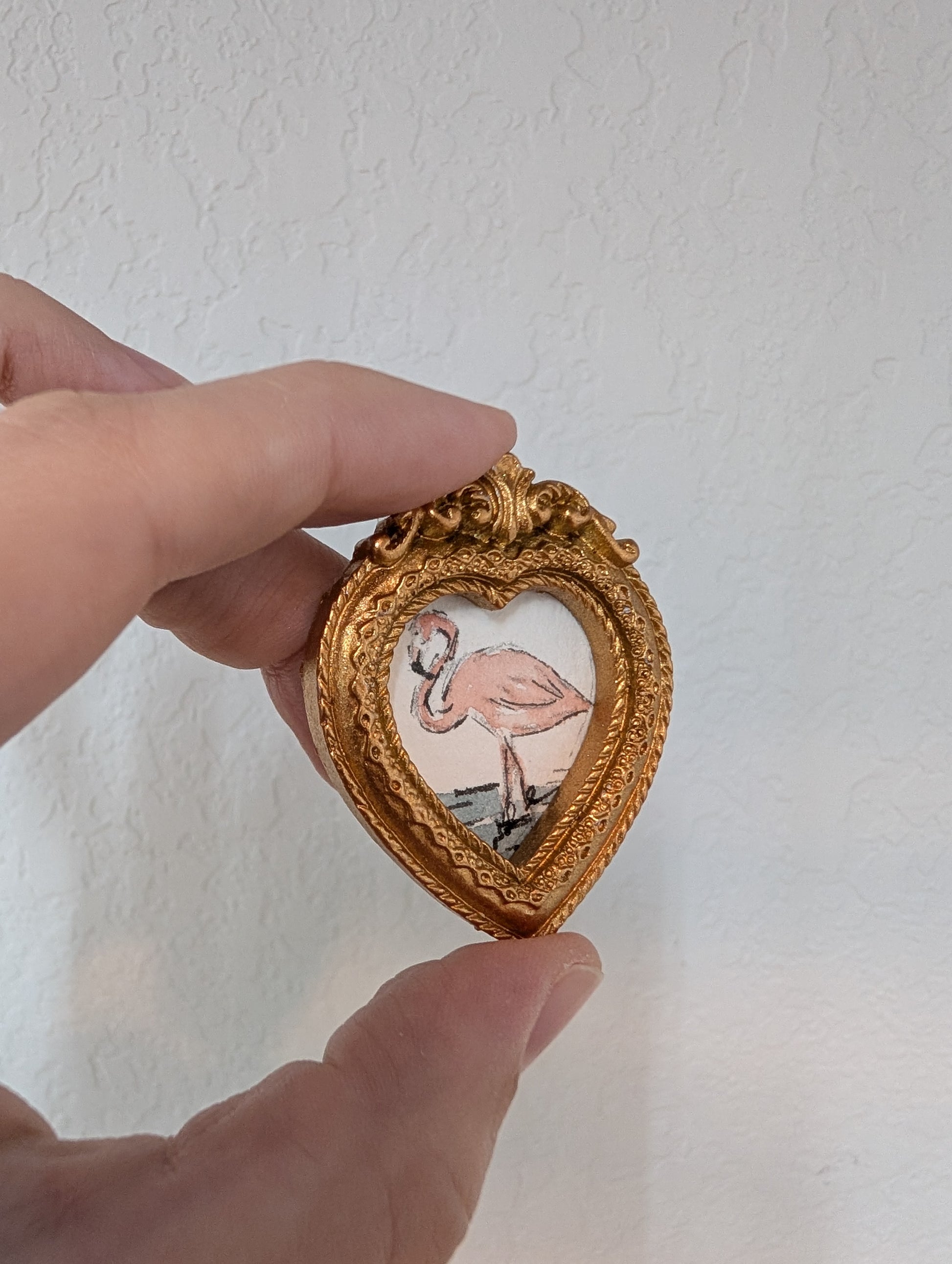 Mini Flamingo Painting - Tiny Original Watercolor Art by Lora Cavallin