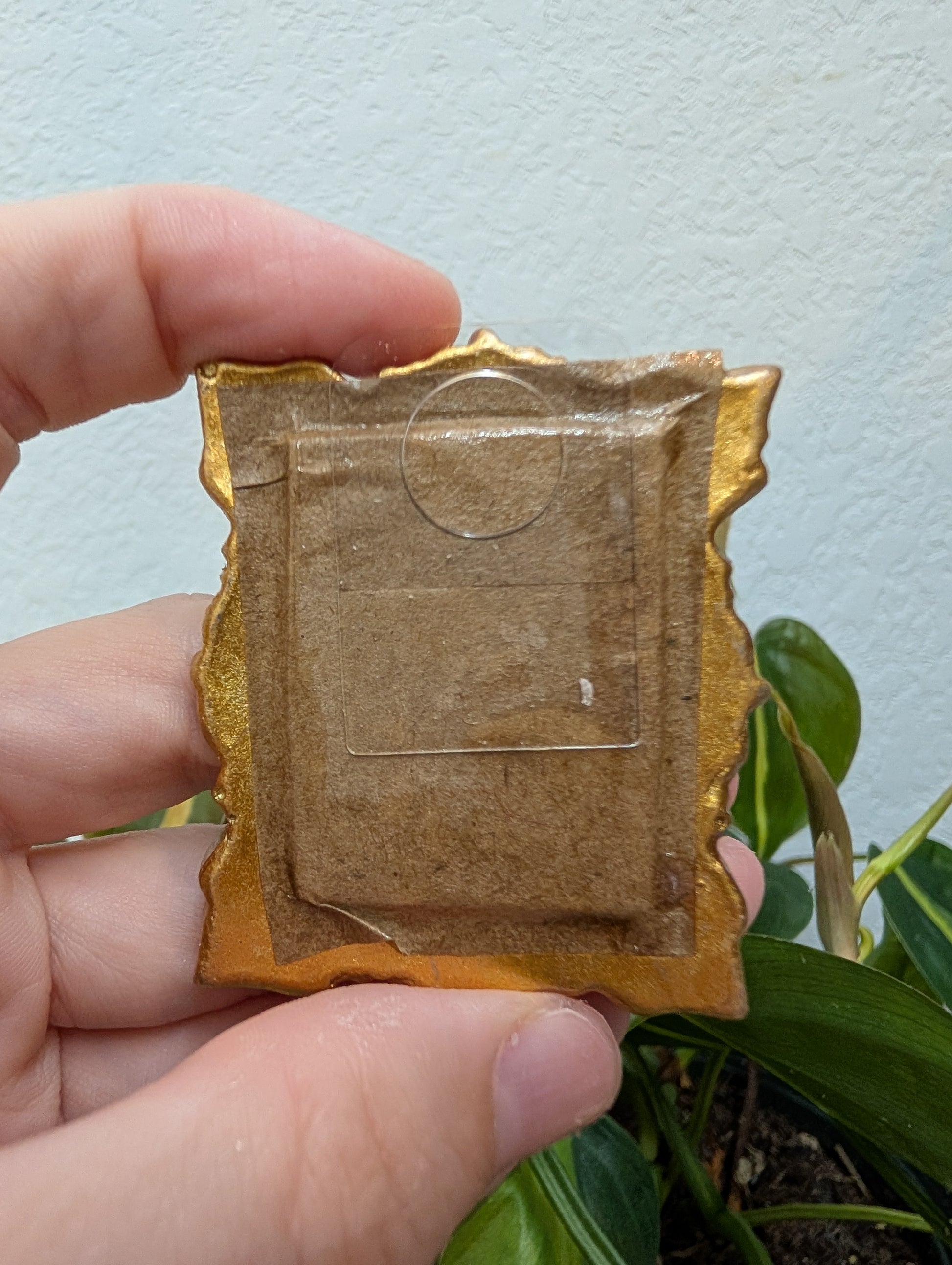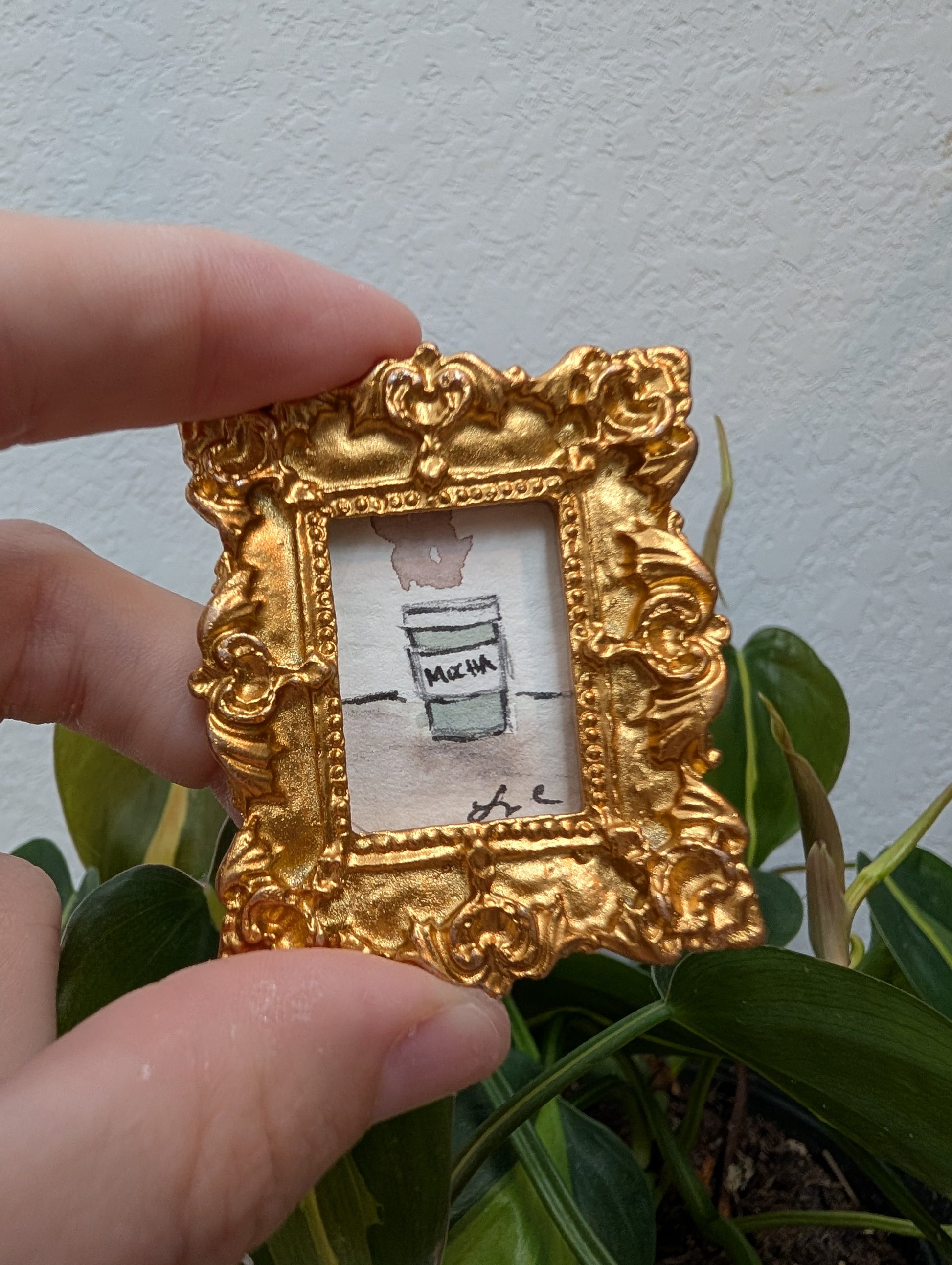 These make great gifts for any miniature enthusiast! It comes in the little gold frame, and has a tag hanger on the back.