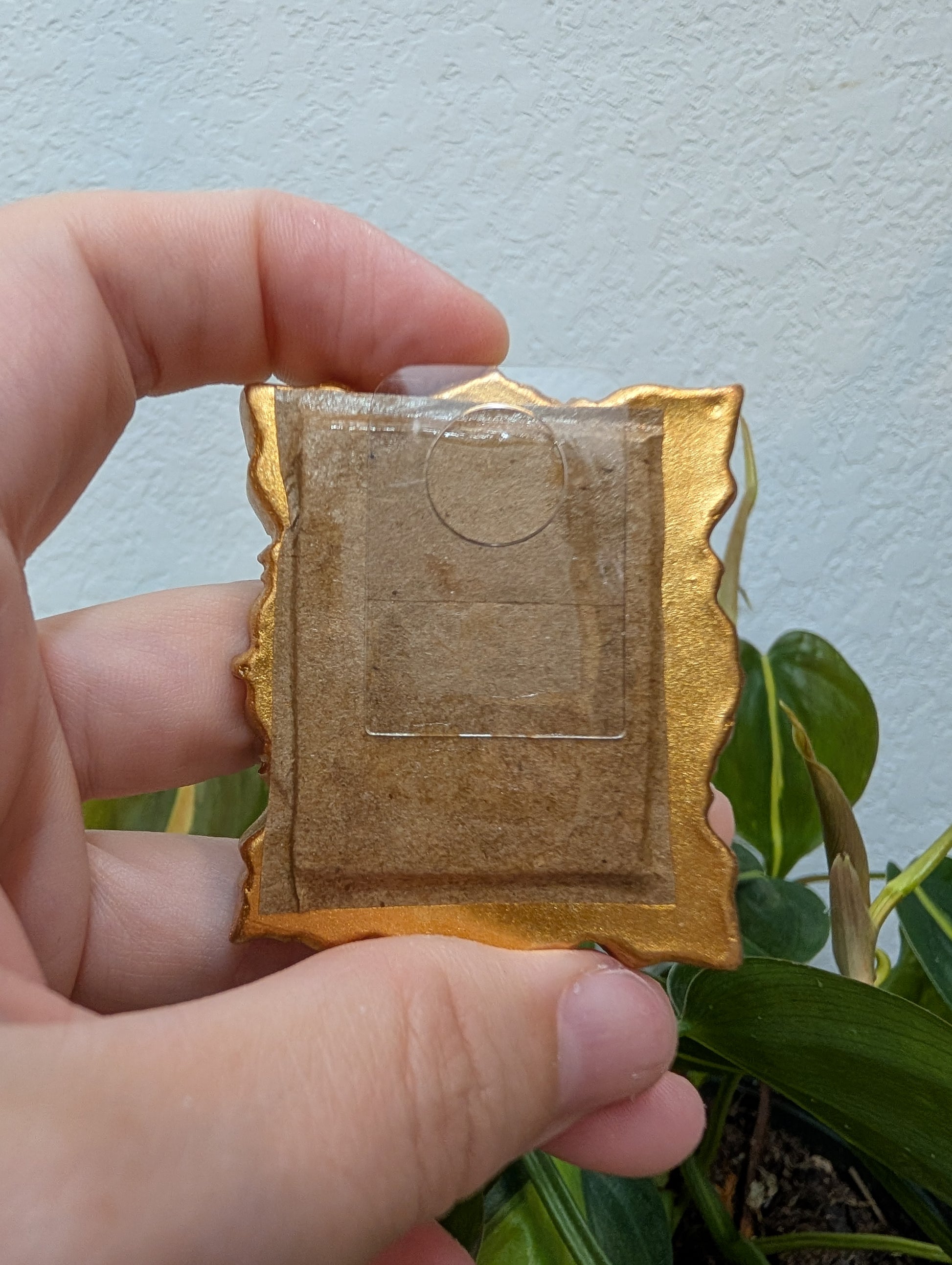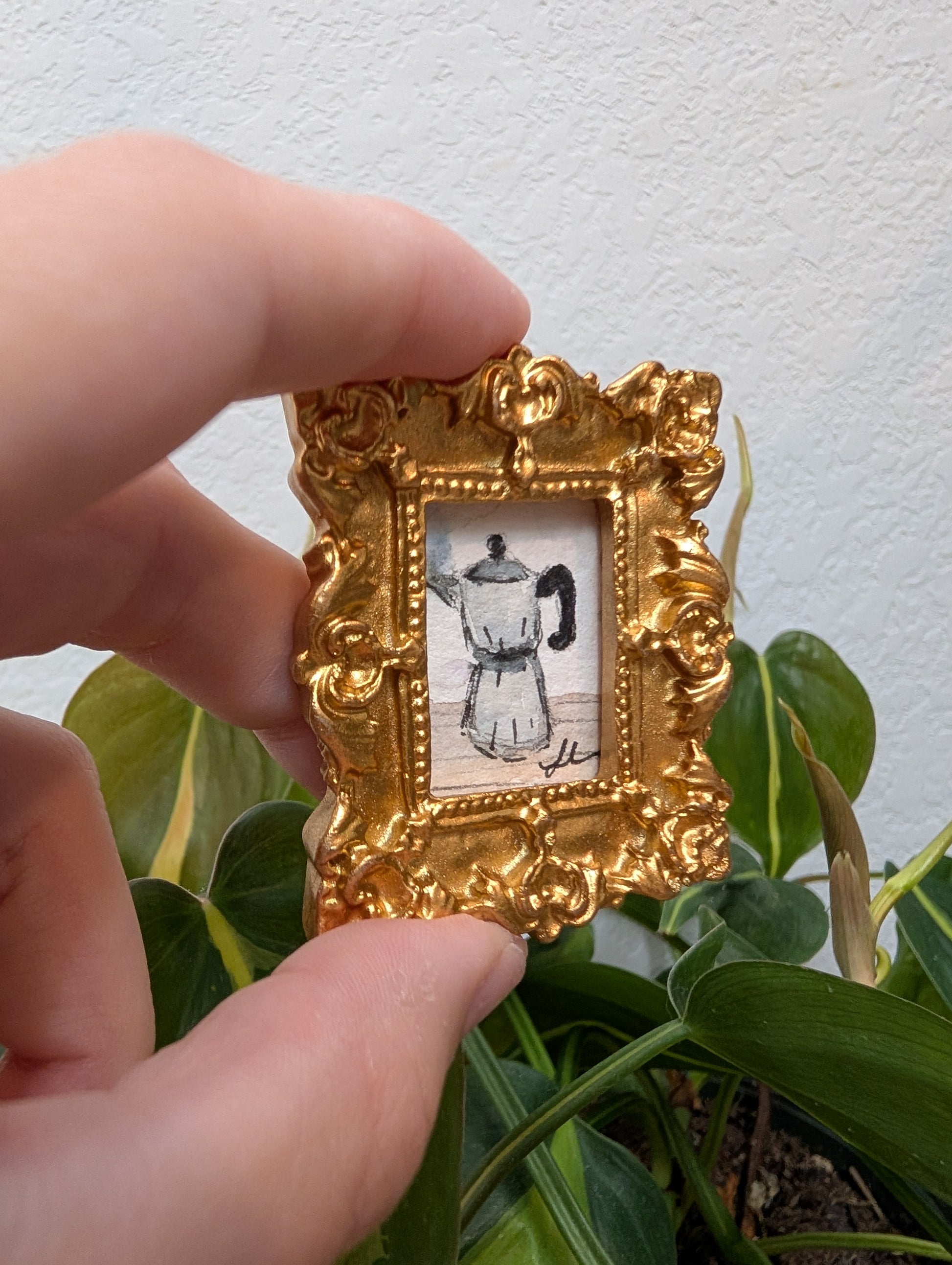 These make great gifts for any miniature enthusiast! It comes in the little gold frame, and has a tag hanger on the back.