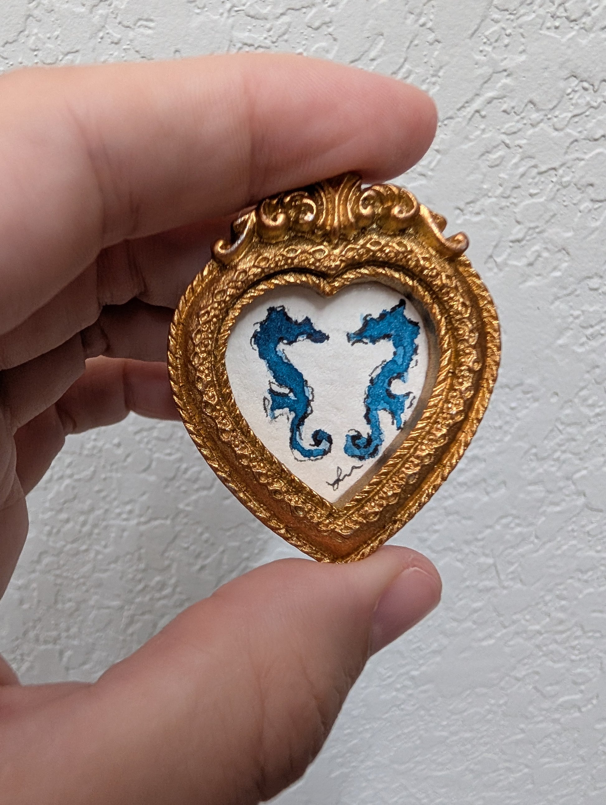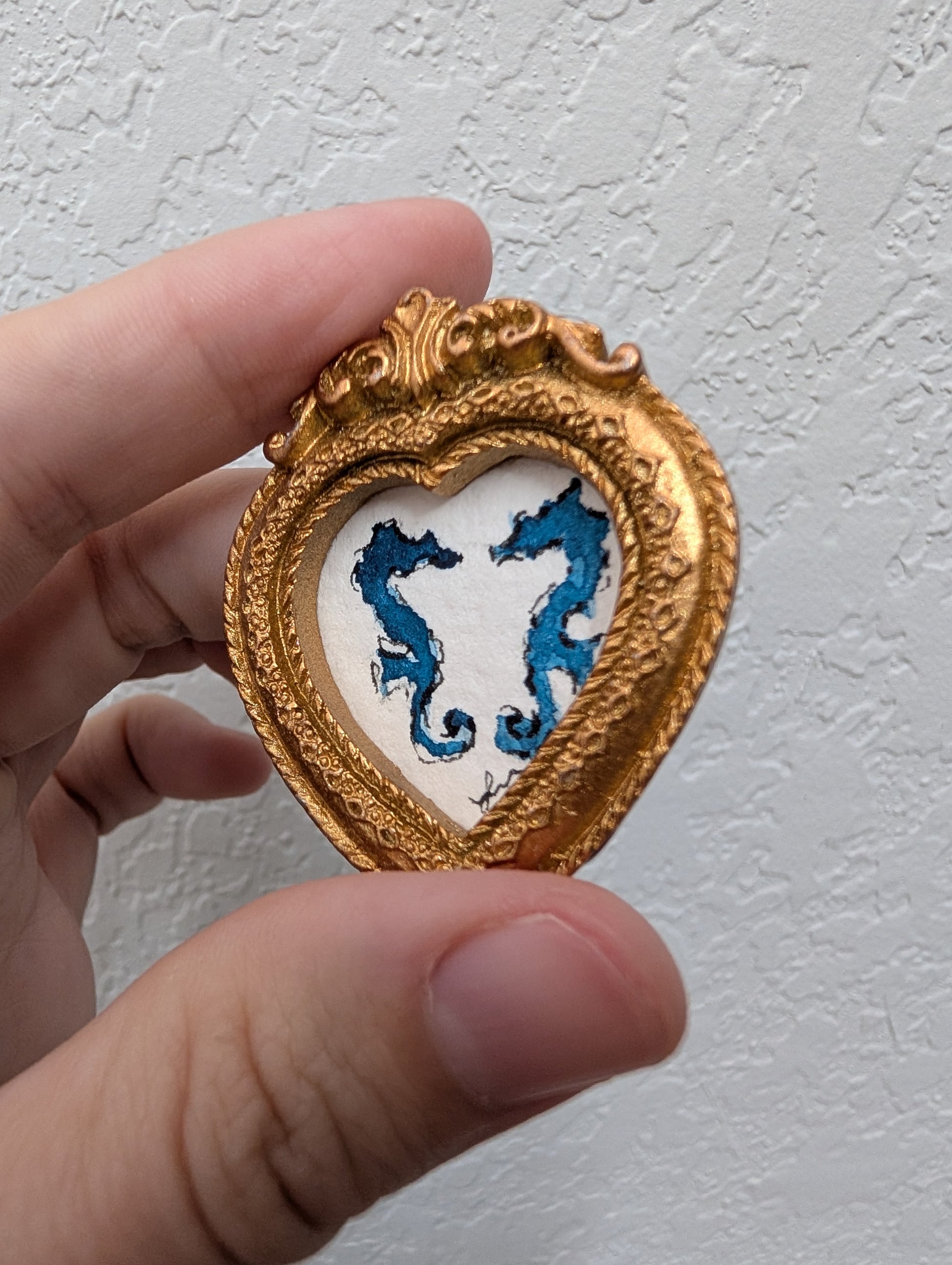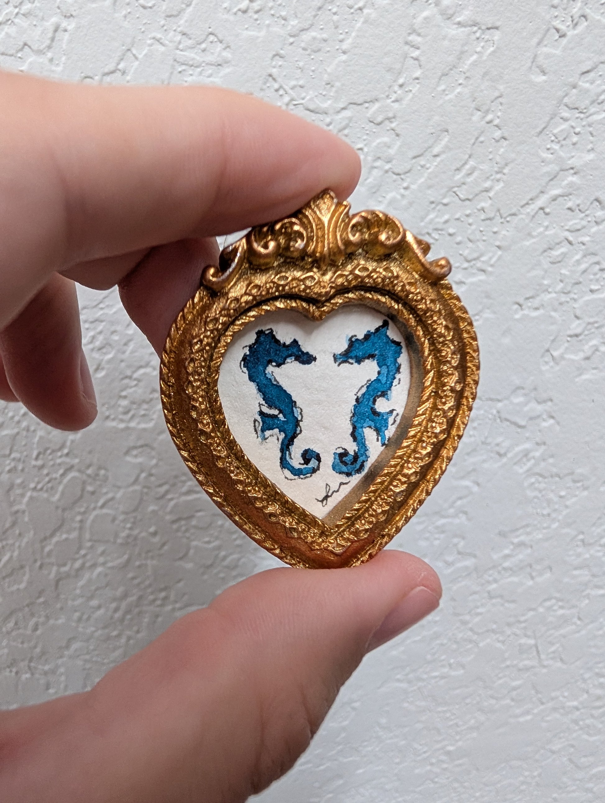 These make great gifts for any miniature enthusiast! It comes in the little gold frame, and has a tag hanger on the back.