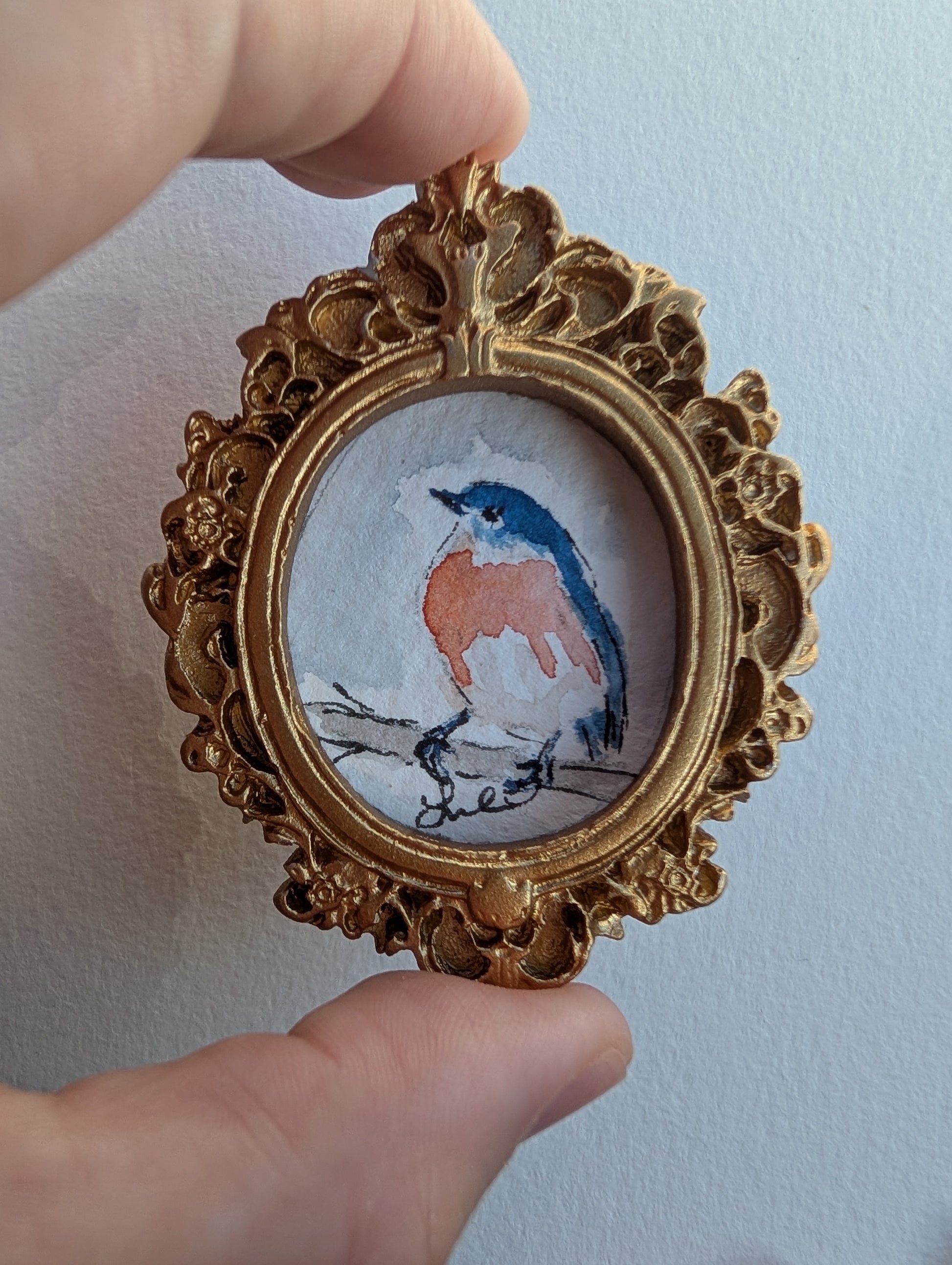 Mini Bluebird Painting - Original Watercolor Art by Lora Cavallin
