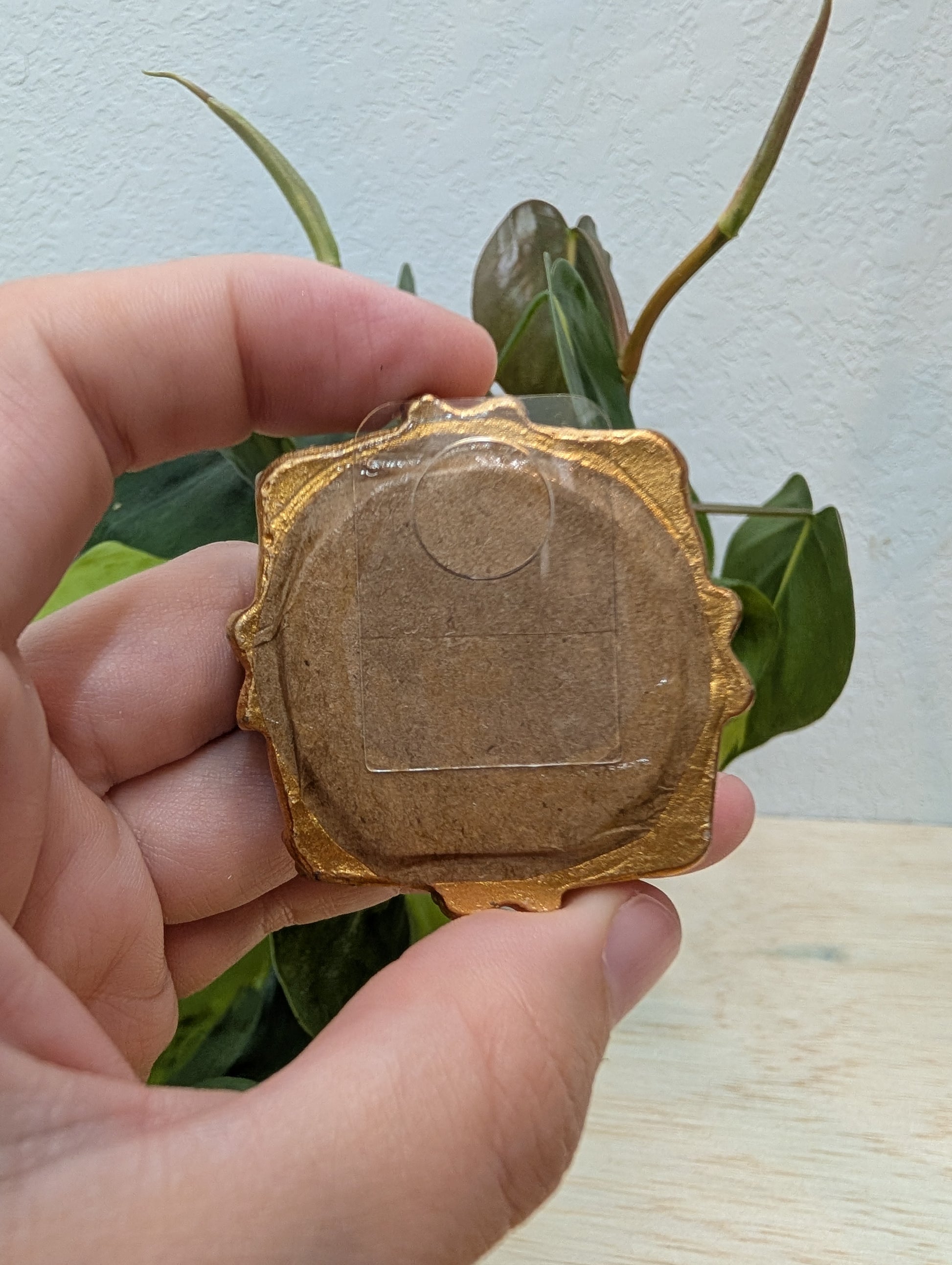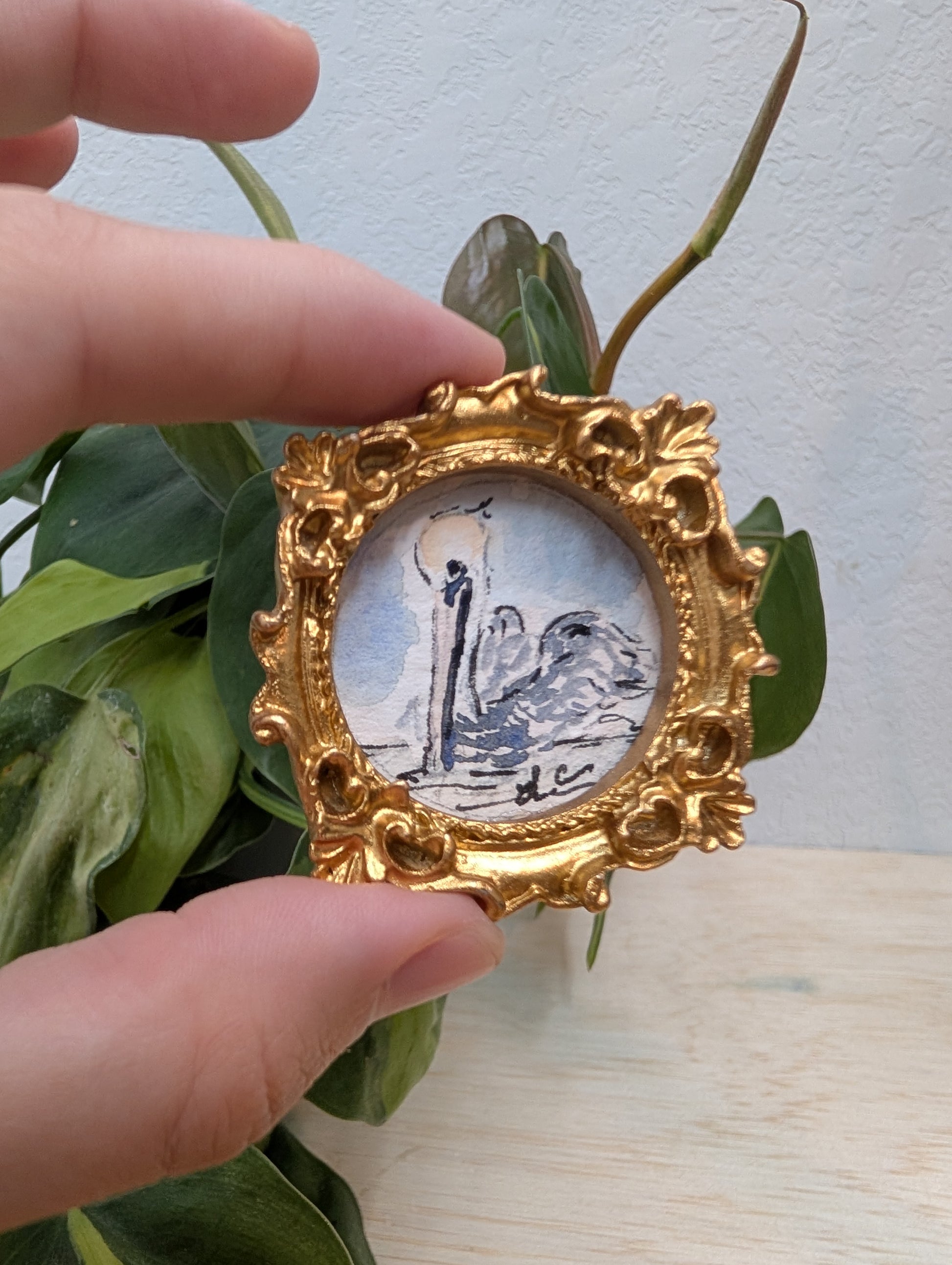 These make great gifts for any miniature enthusiast! It comes in the little gold frame, and has a tag hanger on the back.