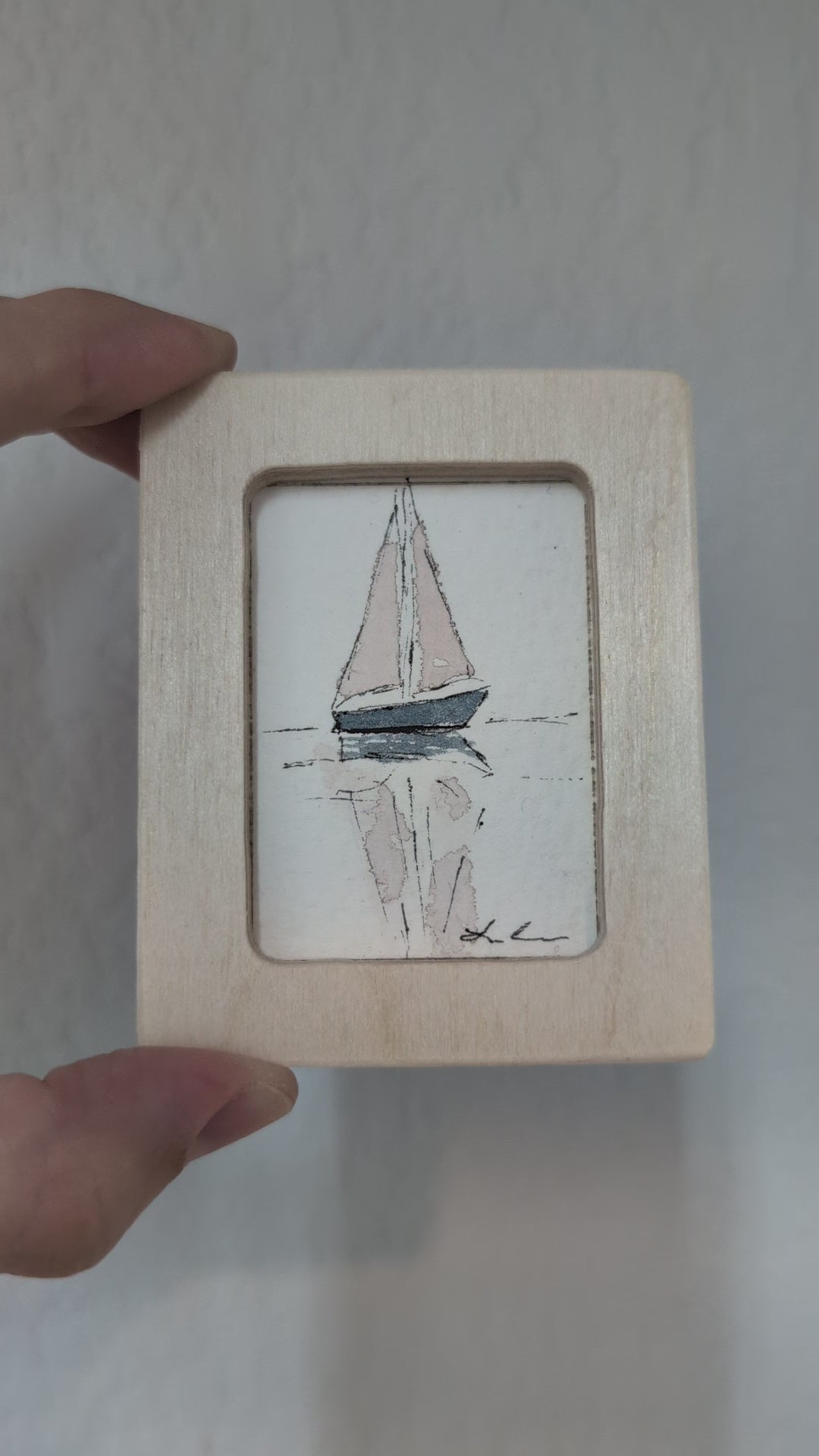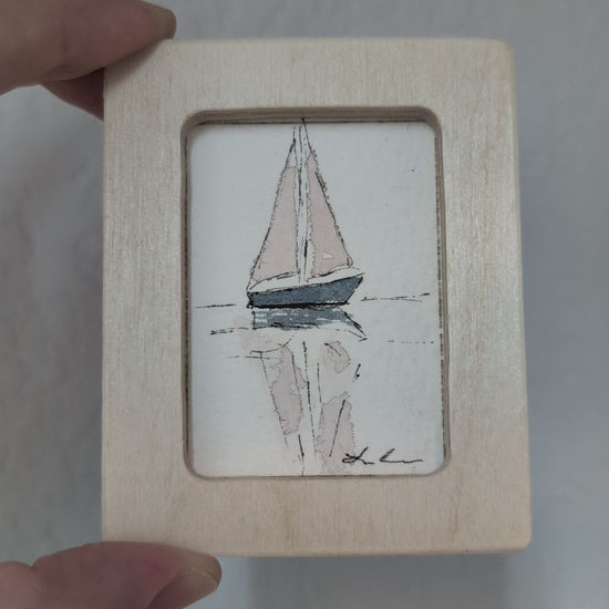 Mini Sailboat Painting - Original Watercolor Art by Lora Cavallin