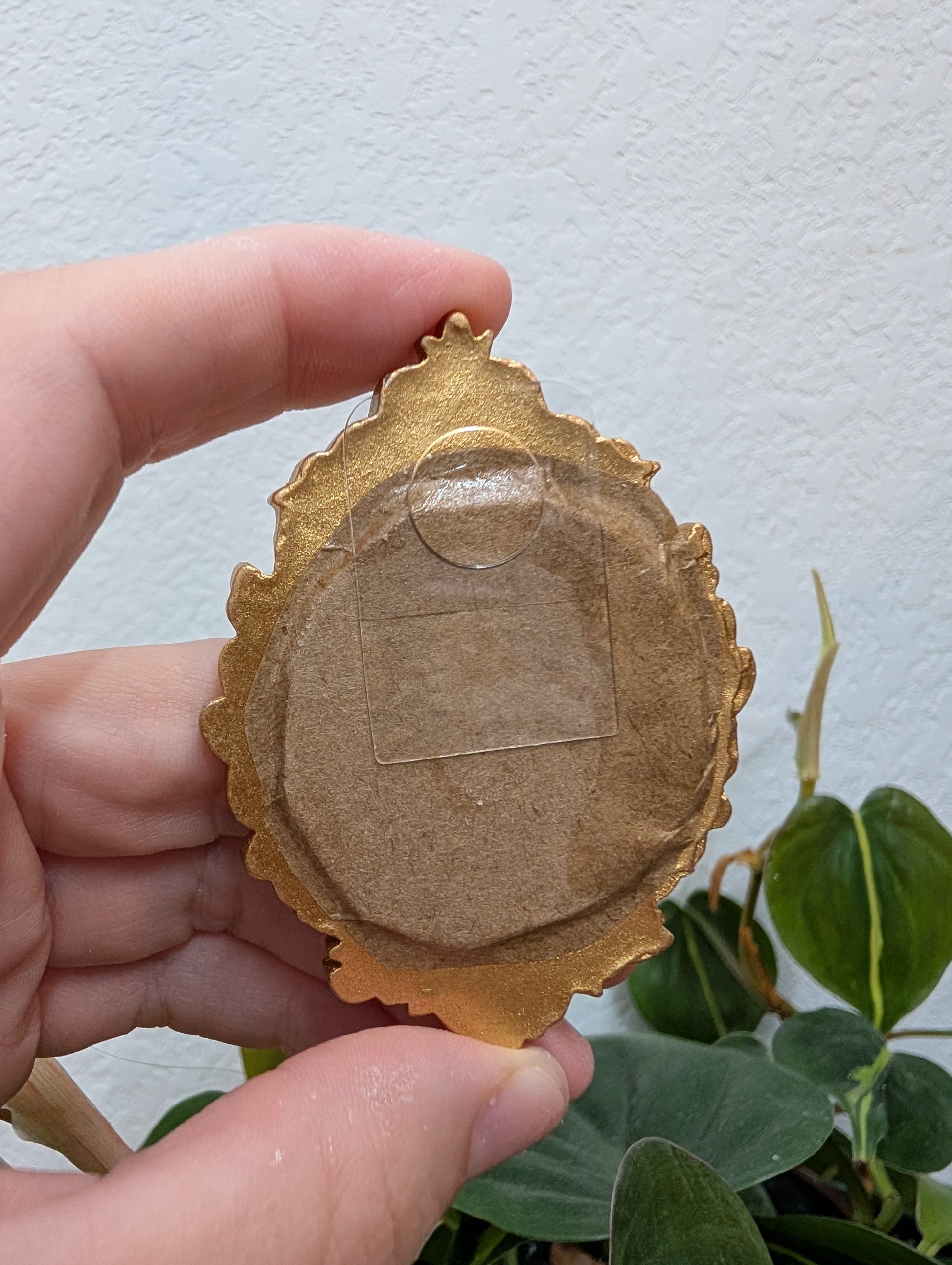 These make great gifts for any miniature enthusiast! It comes in the little gold frame, and has a tag hanger on the back.