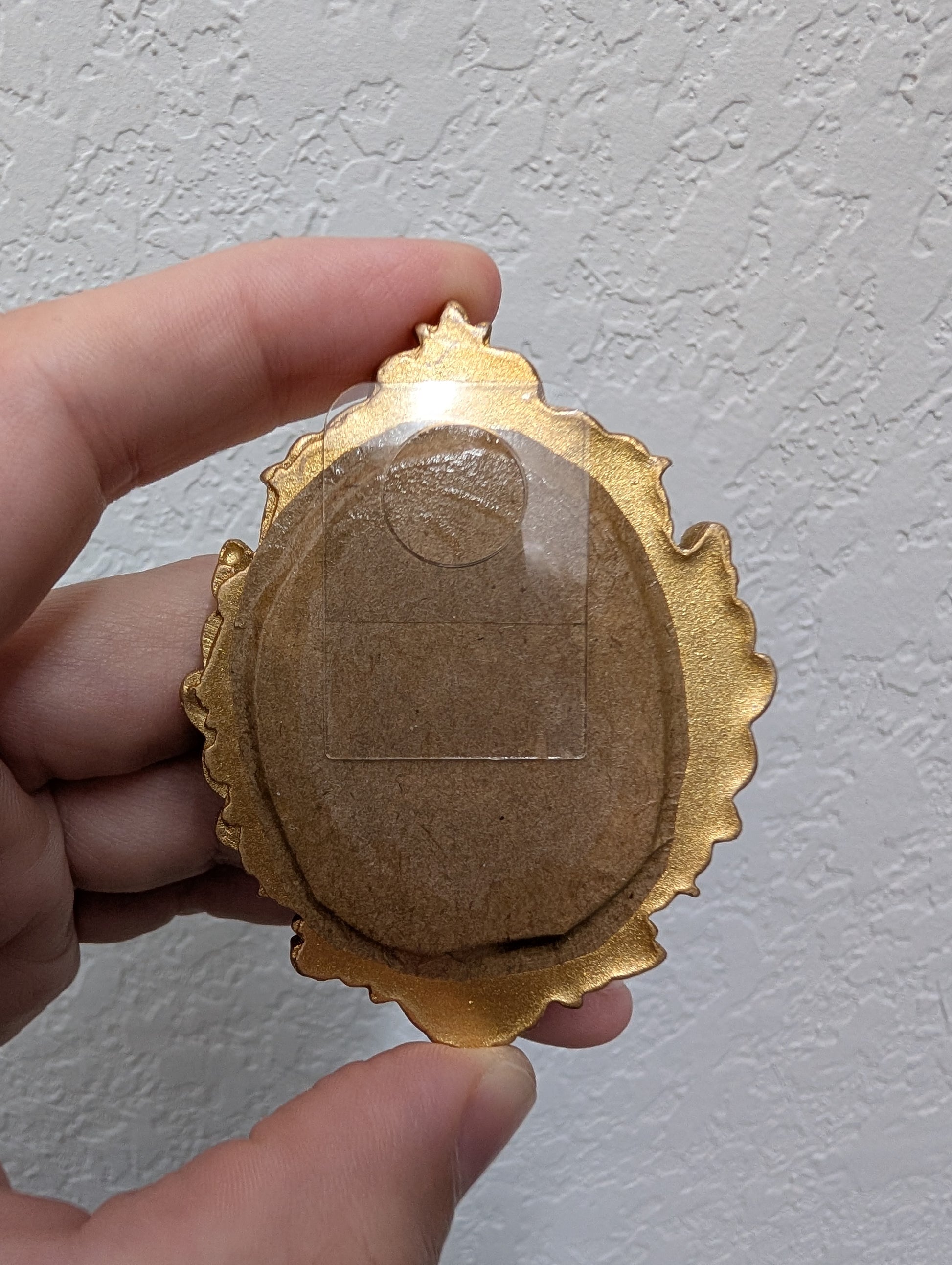 These make great gifts for any miniature enthusiast! It comes in the little gold frame, and has a tag hanger on the back.