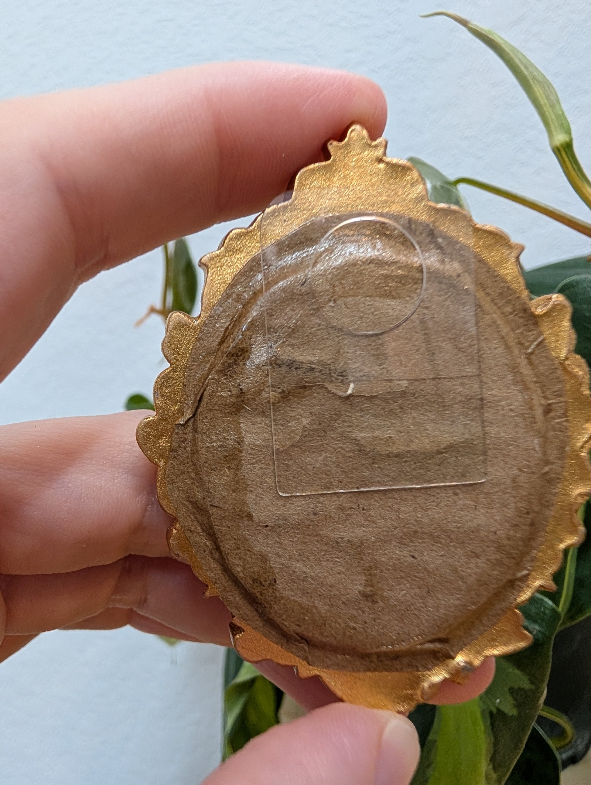 These make great gifts for any miniature enthusiast! It comes in the little gold frame, and has a tag hanger on the back.