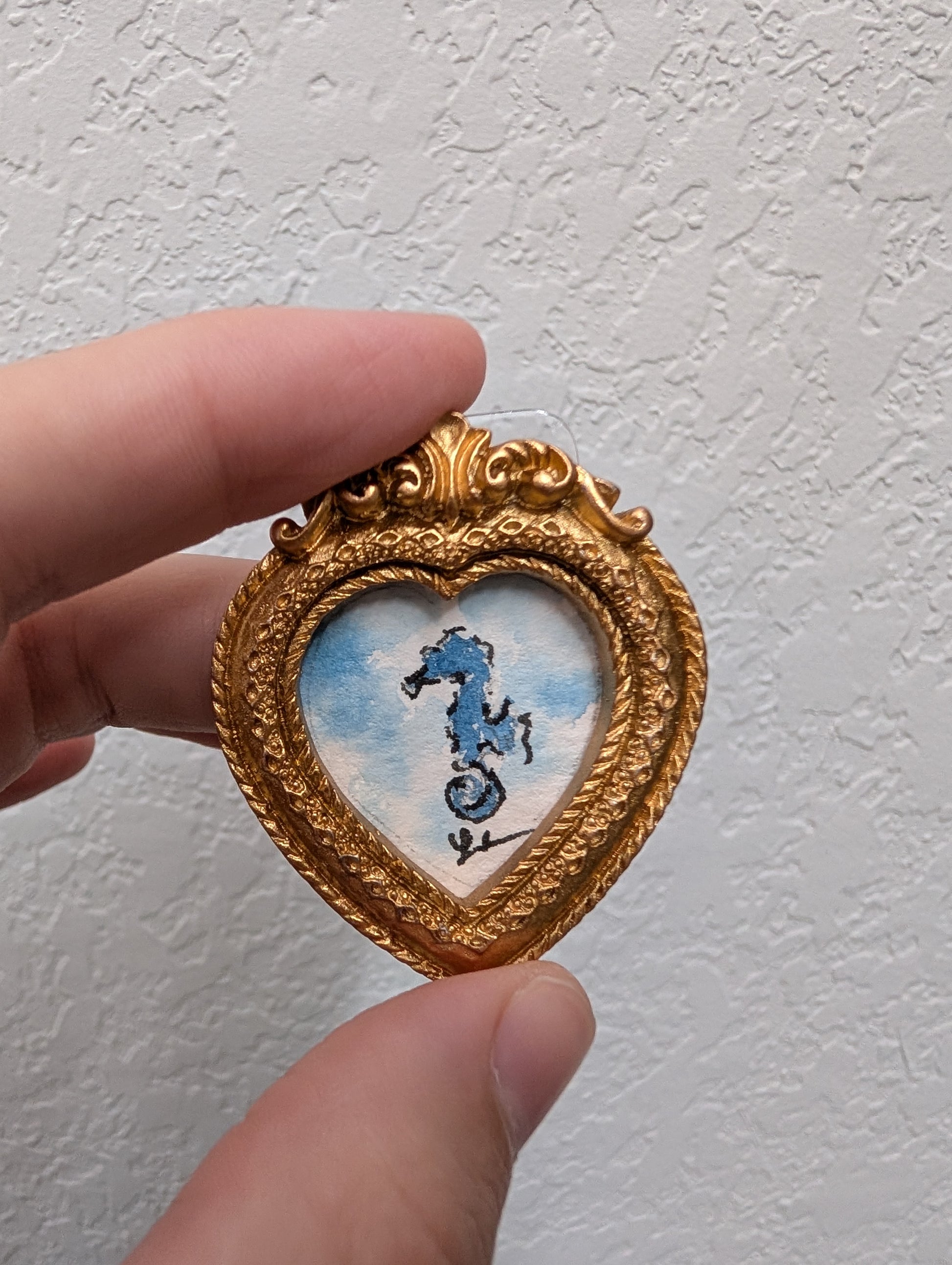 These make great gifts for any miniature enthusiast! It comes in the little gold frame, and has a tag hanger on the back.