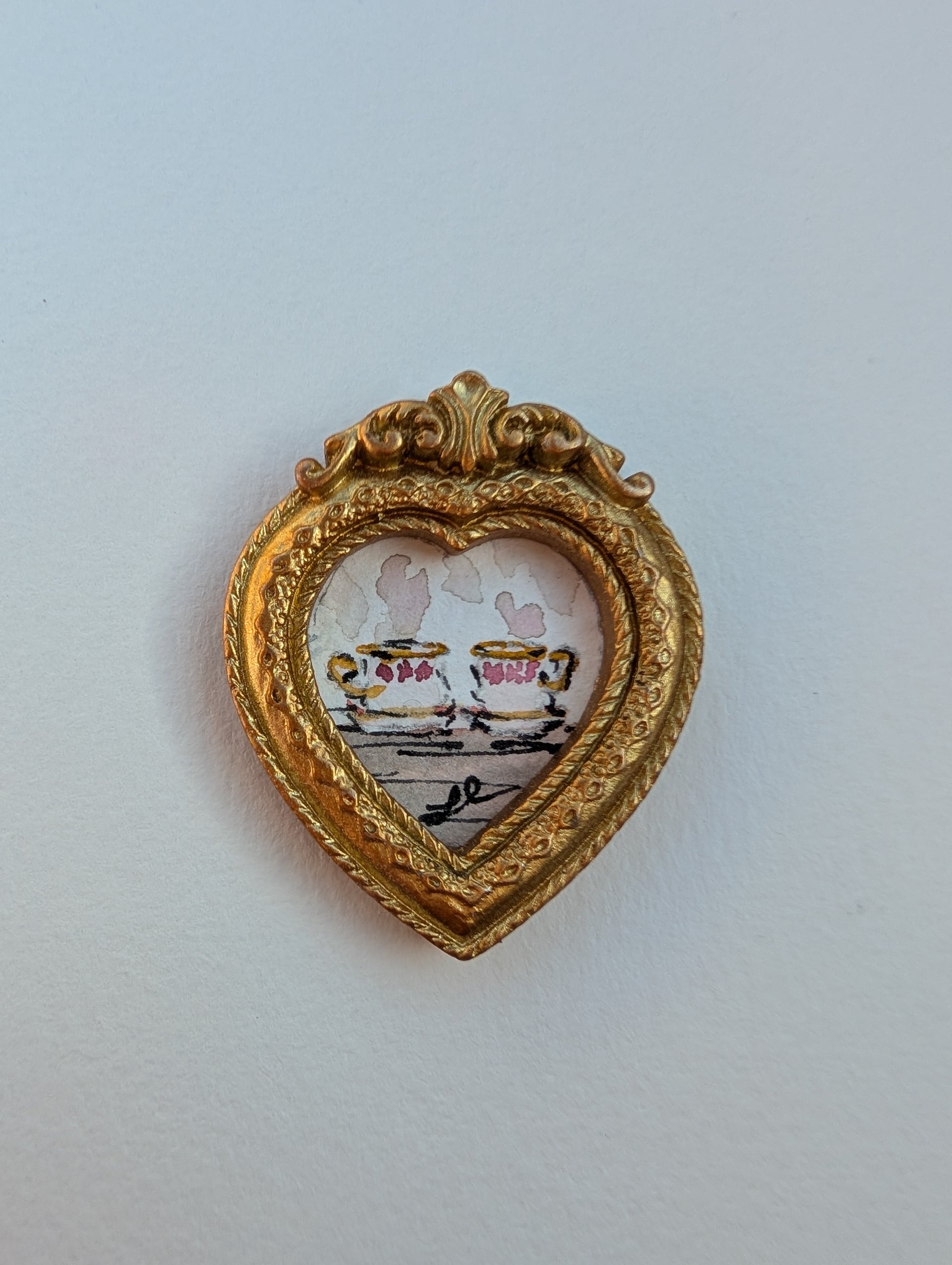 These make great gifts for any miniature enthusiast! It comes in the little gold frame, and has a tag hanger on the back.